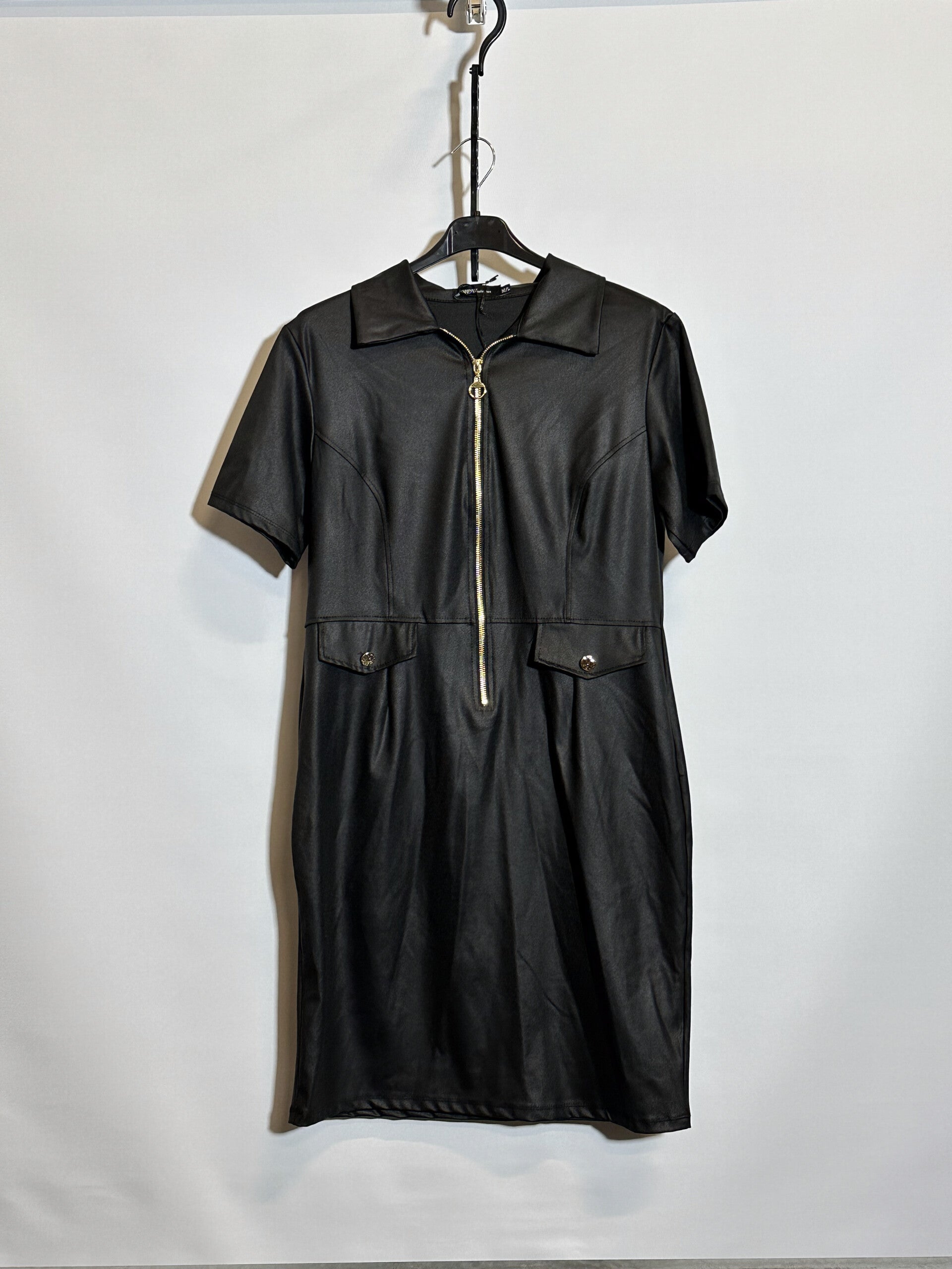 Korte mouwen jurkje, met rits en leuke zakjes op de voorkant.